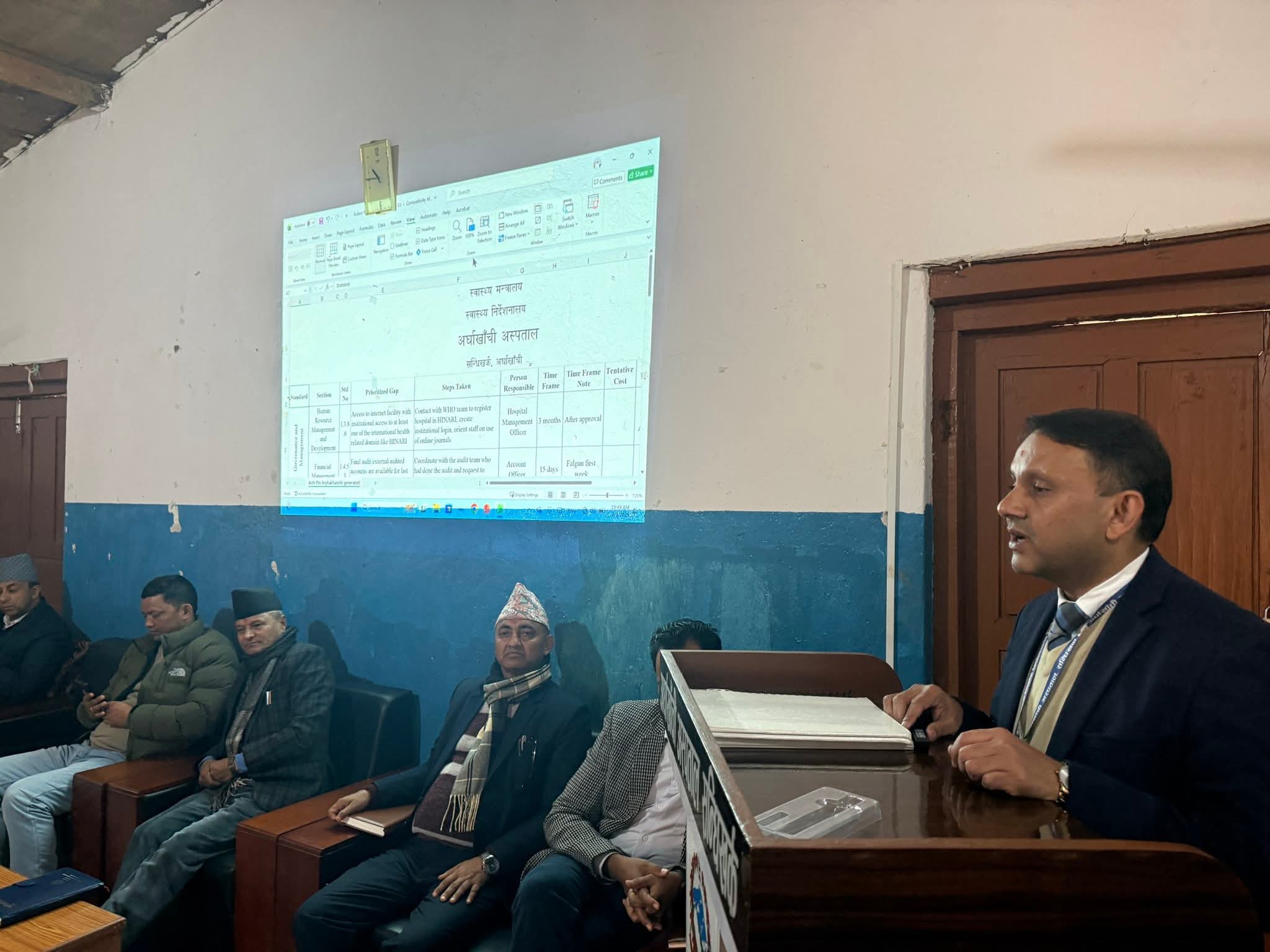 अर्घाखाँची – न्युनतम सेवा मापदण्ड (MSS) कार्यान्वयन कार्यक्रम अन्तरगत अस्पताल अनुगमन मुल्यांकन तथा समीक्षा कार्यक्रम अर्घाखाँची अस्पताल सन्धिखर्कमा सम्पन्न भएको छ ।