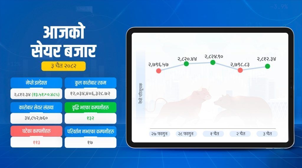 १३२ कम्पनीको मूल्य बढ्दा ११३ को घट्यो भने १७ को स्थिर रह्यो । हाइड्रोपावर समूह सबैभन्दा धेरै १.५९ प्रतिशत बढ्यो । त्यस्तै बैंकिङ ०.८४, विकास बैंक ०.६४, लगानी ०.६१, उत्पादन तथा प्रशोधन ०.२९ प्रतिशत बढे ।